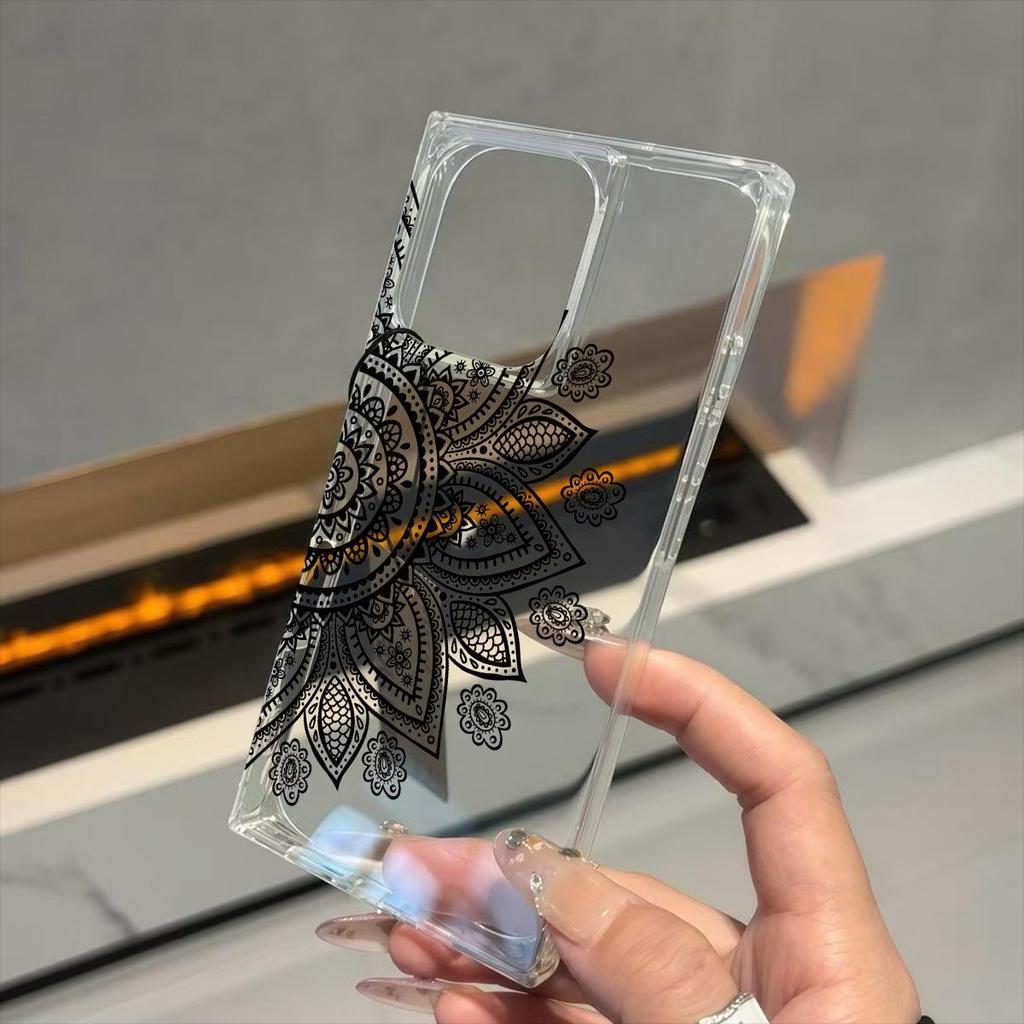 Transparente Quadratische Rückseite Röhrenhülle Schutz Für iPhone 13 12 15 Plus 14 Pro Max 16 ProMax 11 Anti-Sauerstoff, Schwarzes Halber Blumenkranz Muster Gehäuse