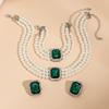 4-teiliges Damenmode Leichter Luxus Kurzer Stil Imitationsperle Türkis Halskette Ohrringe Armband Zirkon Set Party Festival Geschenk