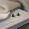 Niedliche koreanische Ohrringe Herz Bling Zirkon Vintage Dunkelgrün Vielseitiger goldfarbener Ohrring für Damen Mode Zirkon 2024 Neu Geschenk