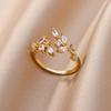 Luxuriöser Zirkon Blume Edelstahl Ringe Zirkon Verstellbarer Ring Damen Hochzeit Anlauffreier Zirkon Urlaubsaccessoires Geschenk