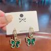 Grüne Kristall-Hängeohrringe für Damen mit Blumenanhängern, Ohrringe mit Imitationszirkonia, Metallblätter, pendientes Partygeschenk