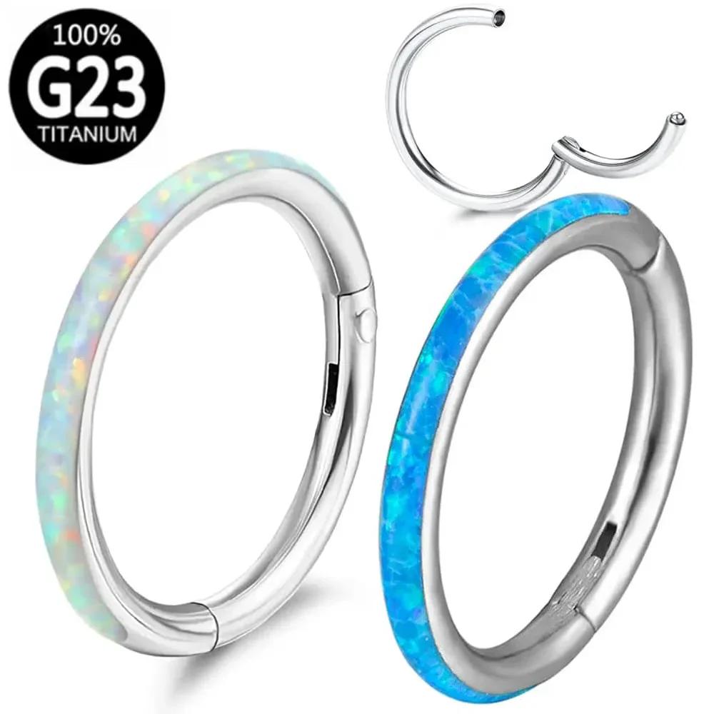G23 Titan Frontseite Opal Nasenring 6mm - 12mm Septum Clicker Klappcreolen Ohr Knorpel Tragus Lippenpiercing