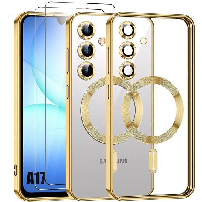 Coque de Protection - BOOLING - pour Samsung Galaxy A17 4G/5G - Anneau Magnétique Doré - 2 Vitres - Antichoc
