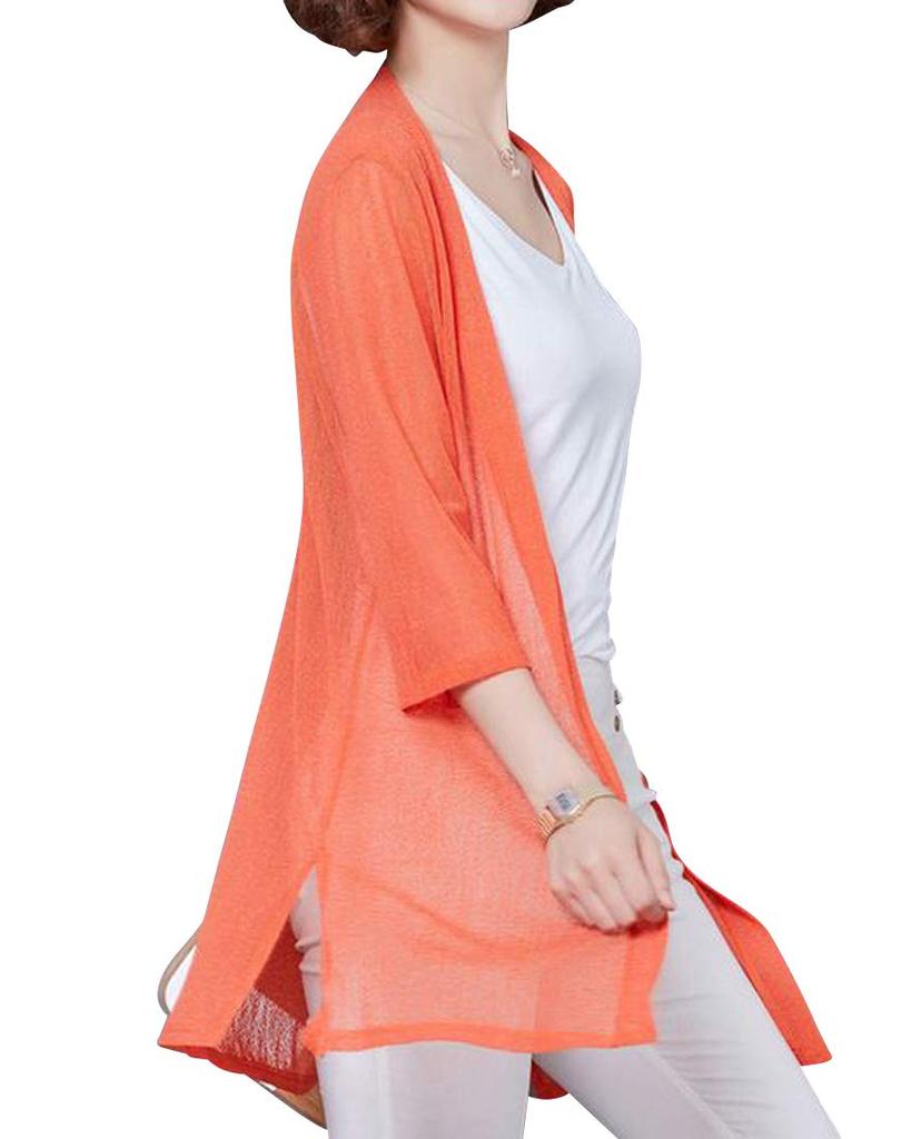This lightweight summer knit has a cool, crisp feel and stretchy texture. Its long length covers your hips and flatters your figure. The thin, lightweight material is not bulky, making it easy to carry when you go out. It's recommended for summer UV protection and air conditioning protection. The simple design makes it suitable for both formal and casual occasions. Knit cardigan, long cardigan, topper cardigan