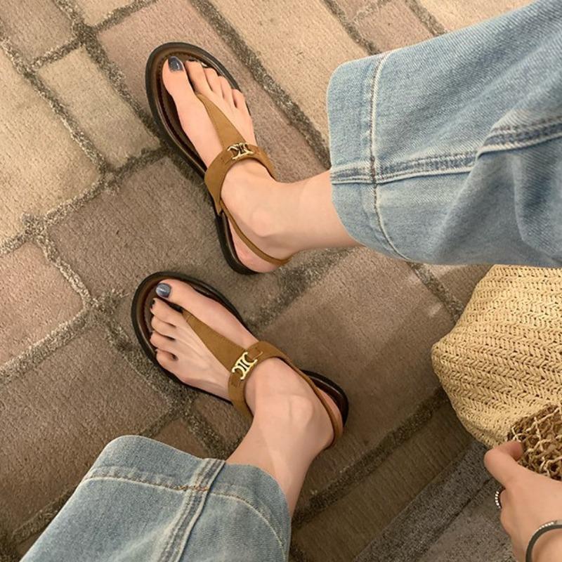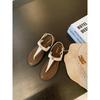 ~ Retro T-Wort mit Urlaubsstil vielseitiger Metall-Schnallenclip Fuß Fischgrätenmuster coole Hausschuhe weiblich Sommer