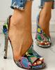 35-43 Retro Farbe Schlangenmuster Wort mit Übergröße High Heel Sandalen Damenschuhe