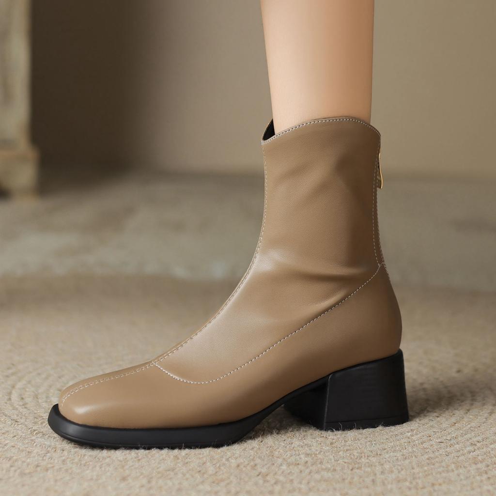 Krazing Pot Mikrofaser Herbst Winter Schuhe Dicke Mittelhohe Absätze Größe 43 Chelsea Boots Aprikose Reißverschluss Stiefeletten