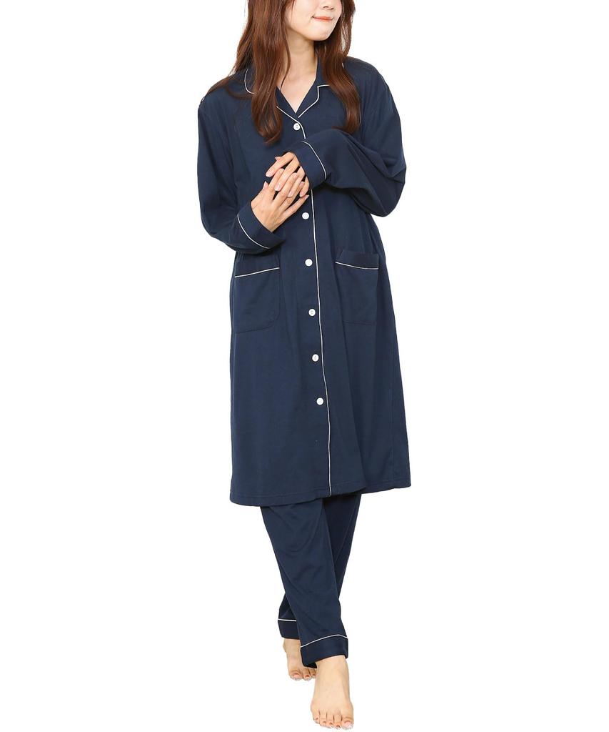 [Front opening & long length] The front opening design makes it easy to put on and take off. The long length and front opening means it can be worn without pants, making it also recommended for maternity wear. [Snap buttons at the hem] The bottom button is a snap button to prevent the buttons from tearing off when the hem is pulled. [Snap buttons at the chest] The second to fourth buttons are snap buttons to make breastfeeding easier after giving birth. [Pockets on both sides] The top has convenient pockets on both sides where you can easily store your smartphone or other small items! [Pants with waist adjustment function] The pants come with an adjuster so you can adjust the waist size to fit your growing belly.