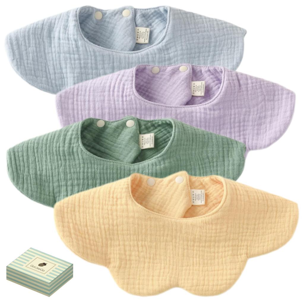 GoUseGo Baby Set aus Blütenblatt Unifarben Natur Baby Babyparty Geschenk Lätzchen, Wasserdicht, 4, 6-lagige Gaze, Groß, 360-Grad-Lätzchen, Farbe, 100% Baumwolle, Farbe,