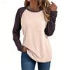 Damen T-Shirt Einfarbig Rundhalsausschnitt Tasche Langarm Oberteil