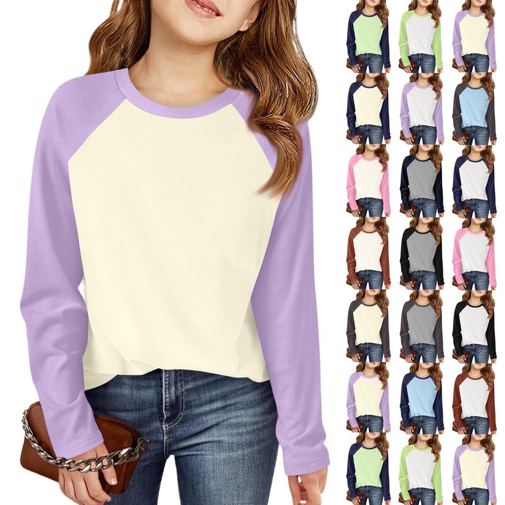 Mädchen Raglan-T-Shirt - Einfarbig Langarm Basisschicht