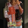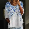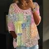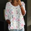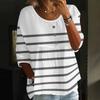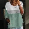 Damen Casual Mode Dreiviertelarm Locker Rundhals Knopf Karoprint Oberteil