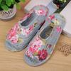 Vintage Korea Floral Hausschuhe Pantoffeln Damen Baumwollstoff Hausschuhe Nähen Bequeme Flache Schuhe Indoor Weich Reise
