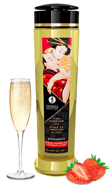Huile de massage Romance Vin pétillant à la Fraise - Shunga - Huile de Massage