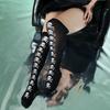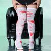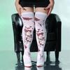 Schenkelhohe Halloween-Strümpfe mit Totenkopf-Print – Polyester Overknee-Socken