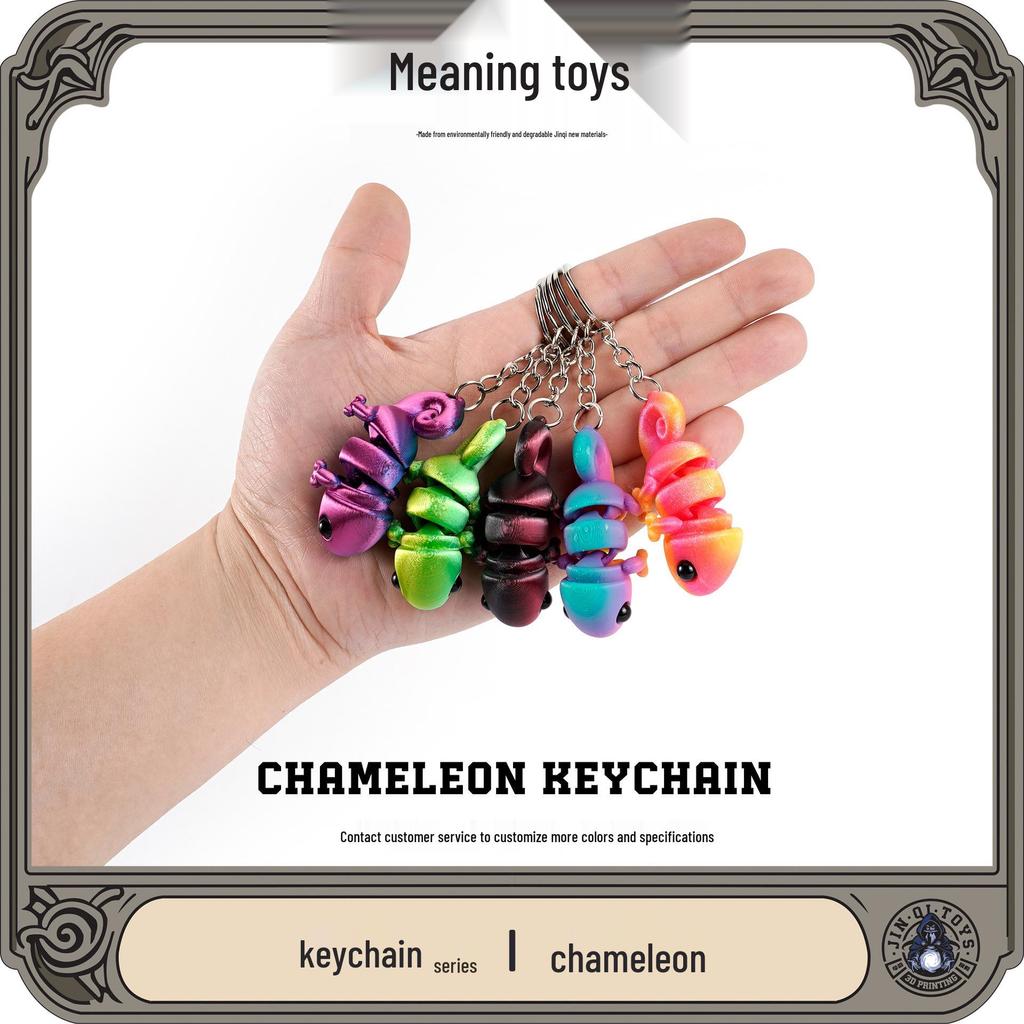 Verleihen Sie Ihren Schlüsseln oder Ihrer Tasche einen Farbtupfer und eine verspielte Note mit diesem auffälligen mehrfarbigen 3D-Chamäleon-Schlüsselanhänger-Anhänger.. Dieses charmante Accessoire ist aus strapazierfähigem Kunststoff gefertigt und verfügt über ein bewegliches Design, das die verspielte und sich ständig verändernde Natur eines echten Chamäleons nachahmt.. Perfekt für alle, die ihre wilde Seite zum Ausdruck bringen möchten, wird dieses niedliche und trendige Stück Ihre Alltagsessentials garantiert aufpeppen.