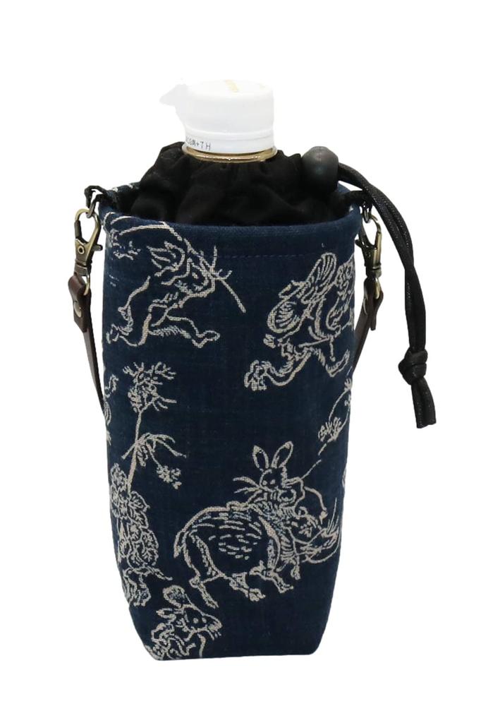 Isolierte PET-Flasche Wasserflasche Becherflasche Kordelzug Leder Japanisches Muster Choju Giga Hülle, Tasche, Hülle, Tasche, 500-600ml Fassungsvermögen, Griff, (Marine