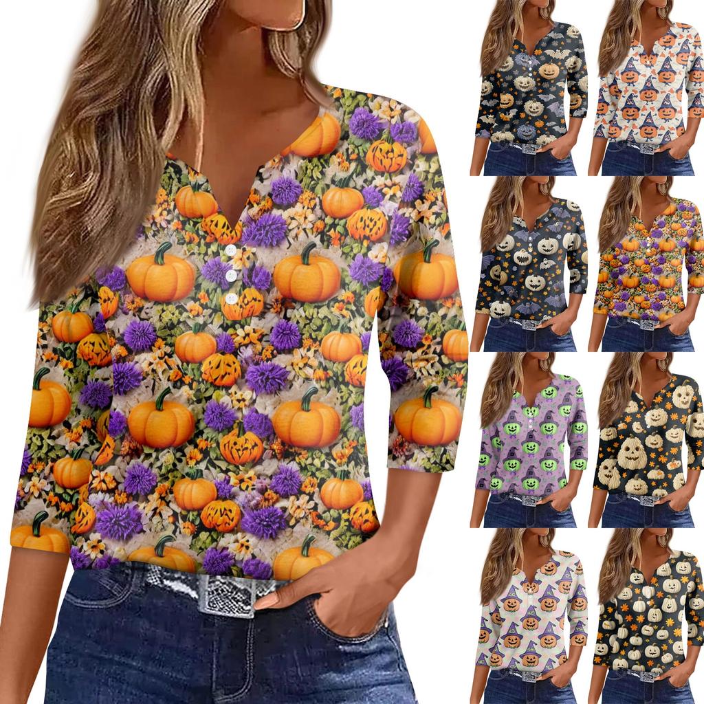 Damen Casual Mode Sexy Bequem V-Ausschnitt Halloween Siebenärmeliges Oberteil