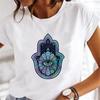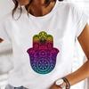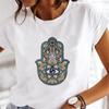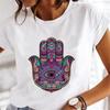 Hand von Hamsa Fatima Print Mode T-Shirt Top Damen Sommer Lässig Harajuku Musterdruck Kurzarmshirt Y2K Top