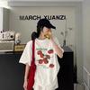 Sommer Damen Y2K Koreanischer Stil T-Shirt Baumwolle Locker Kurzarm Top mit Cartoon Tomaten Grafikdruck Atmungsaktives Casual Tee