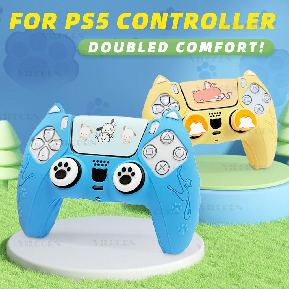 Silikonhülle Set für PS5 Controller Rutschfest Staubdicht Schutzhülle Abdeckung mit Daumengriffkappen Controller Skin Katzenpfote Aufkleber