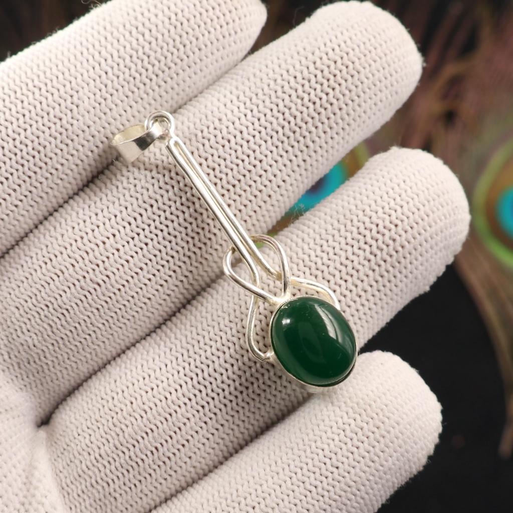 Rare Green Onyx Cab Gemstone 925 Sterling Silver Jewelry Handmade Pendant 1.79" PP-60-37