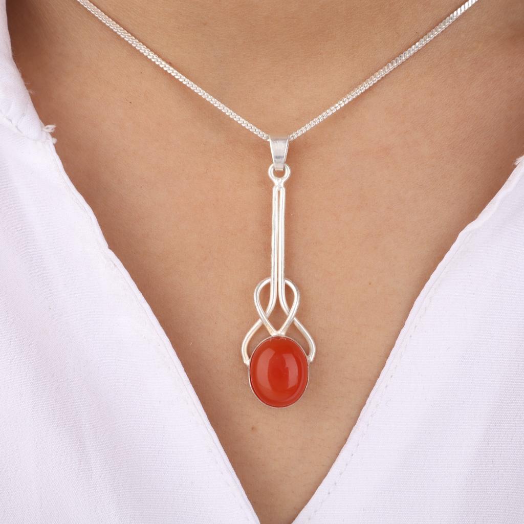 Karneol Edelstein 925 Sterling Silber Schmuck Handgefertigt Hochzeit Anhänger 1.79" PP-60-30