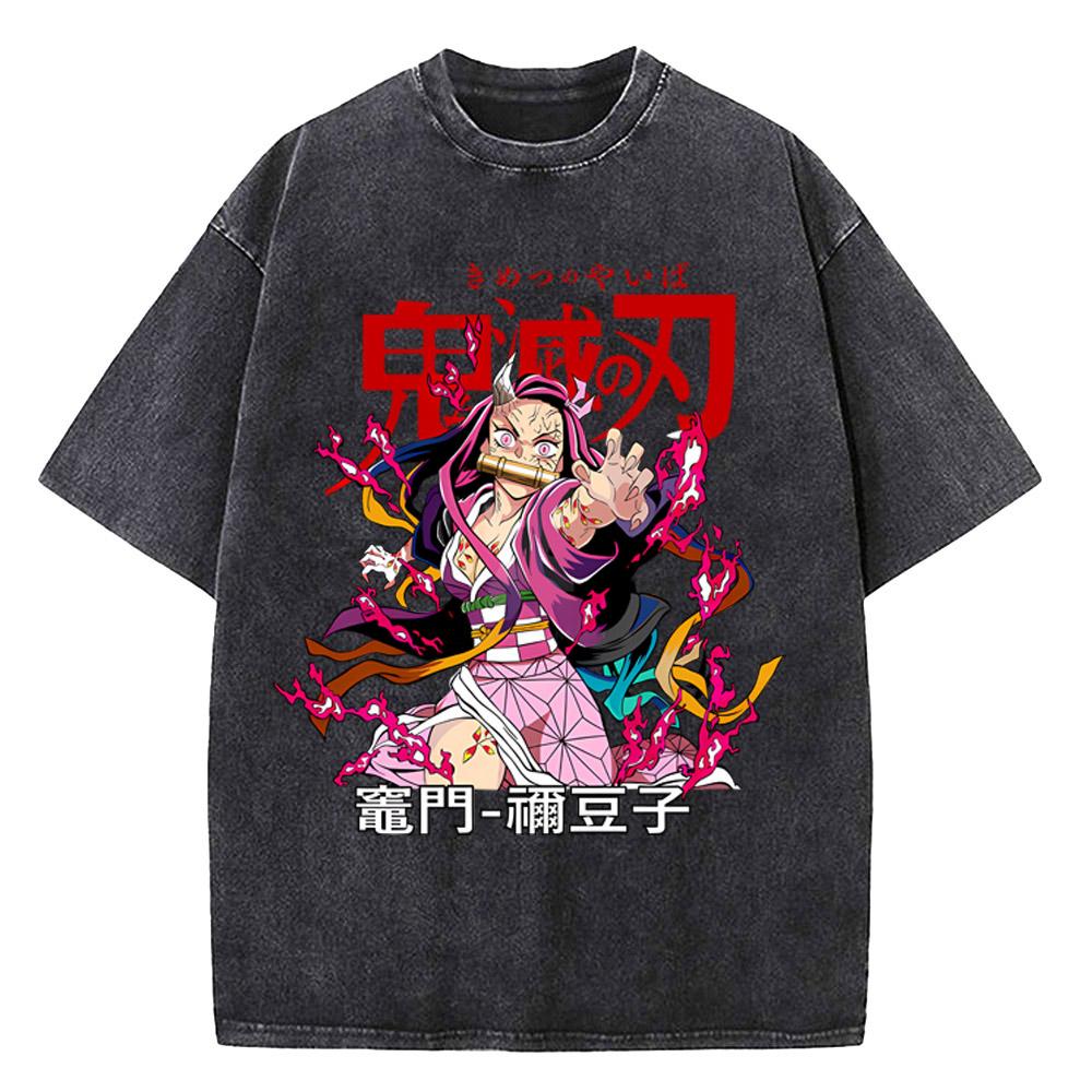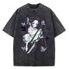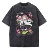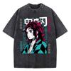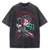 Harajuku Demon Slayer Grafik T-Shirt Herren Vintage Anime Gewaschene T-Shirts für Damen Streetwear Sommer T-Shirts T-Shirt
