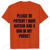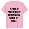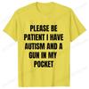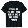 Bitte haben Sie Geduld, ich habe Autismus und eine Waffe in meiner Tasche T-Shirt für Männer Autismus Verfluchtes Meme Alberner Dummer Spruch Kurzarm T-Shirts