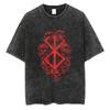 Heißes Anime Berserk Logo Grafik Gewaschenes Bedrucktes T-Shirt Herren Vintage Gothic T-Shirts Lässiges Baumwoll T-Shirt Harajuku Männlich Manga Oberteile