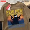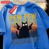 Pew Pew Madafakas Doppelpistole Katze Kurzarm Übergroße Atmungsaktive T-Shirts Baumwolle Sommerkleidung Street Casual T-Shirt Männer
