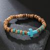 Kokosnussschale Holzchip Türkis Kreuz Armband Herren Hip Hop Handgefertigt Perlen Elastisches Holzarmband