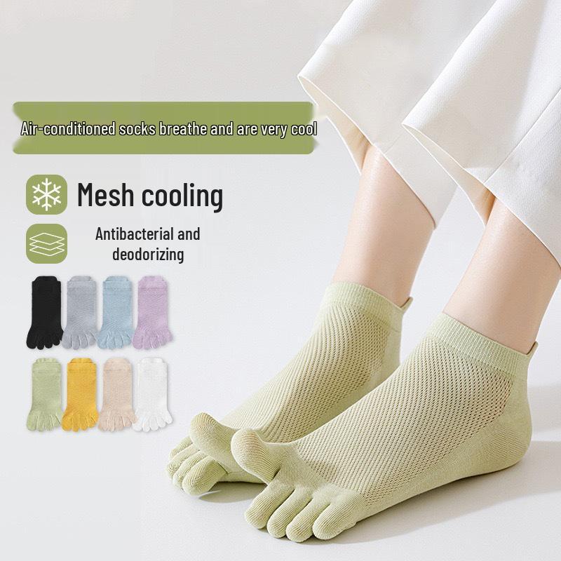 Damen Atmungsaktive Baumwoll-Zehensocken - Sommer Dünn, Antibakteriell, Geruchshemmend, Schweißabsorbierend, Kurze Sportsocken