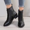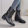 Herbst und Winter neue Gürtelschnalle dicker Absatz Martin Stiefel Retro Seitenreißverschluss Westernstiefel mittlerer Absatz spitz zulaufende Damenstiefel