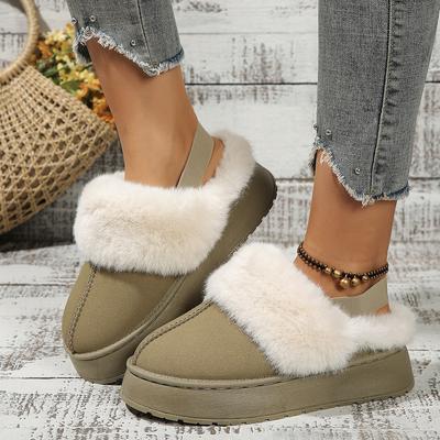 Dicke Sohle flauschige Schneestiefel Hausschuhe Damen neue Mode Oberbekleidung Ein-Pedal Taschenkopf Samt thermische Baumwollschuhe Damen