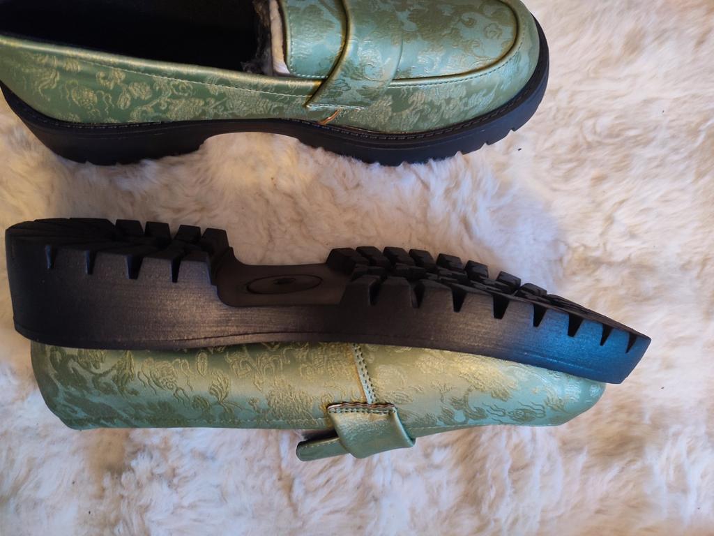 Diese Schuhe hinterließen einen zwiespältigen Eindruck. Sie sind schön, sehen gut aus (aber auf den Promofotos sehen sie schöner aus als in der Realität). In Größe 43 sind sie für einen Fuß von 26,3 cm genau richtig, aber nur so gerade eben.. Was mir absolut nicht gefallen hat, ist, dass sie bei jedem Schritt stark knarren und knistern. Das mag ich überhaupt nicht.
