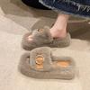 Winter neue quadratische Zehenpartie dicker Boden Oberbekleidung Samt Ein-Wort-Slipper Mode Gürtelschnalle große Größe flauschige Hausschuhe Damen