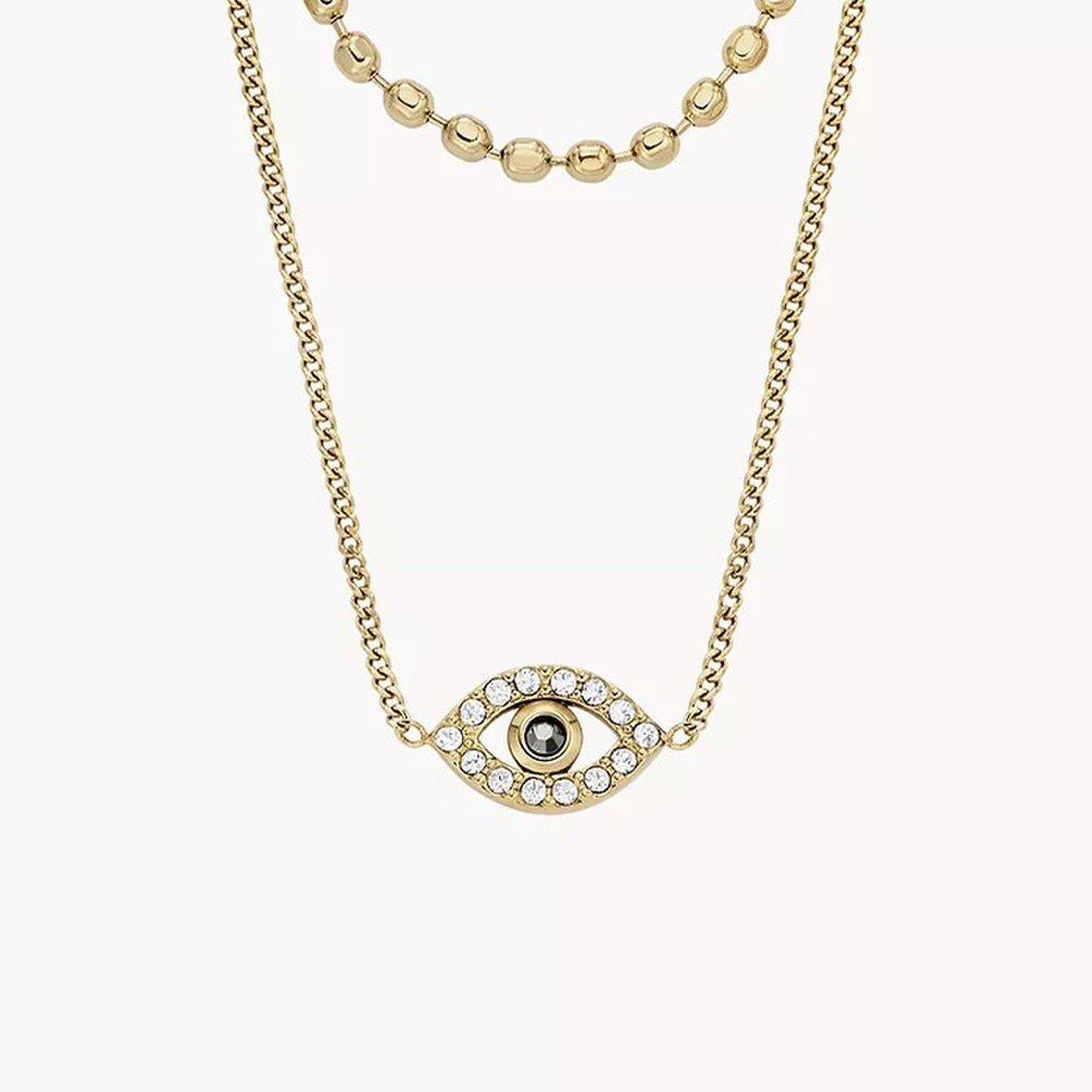 Fossil Women's Sutton Evil Eye Gold-Tone Multi-Strand Necklace Jf04792710 Gold