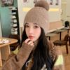 Korean Version of Autumn and Winter New Hat for Women's Pearl Diamond Mark Knitted Wool Hat for Winter Warm Wool Ball Ear Protection Hat Thick