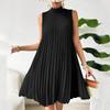 ZANZEA Damen Sommer Stehkragen Lässig Ärmellos Kurzes Kleid