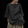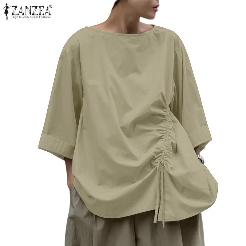 ZANZEA Damen Lässiges Rundhals 3/4-Ärmel Lockere Bluse mit Kordelzug