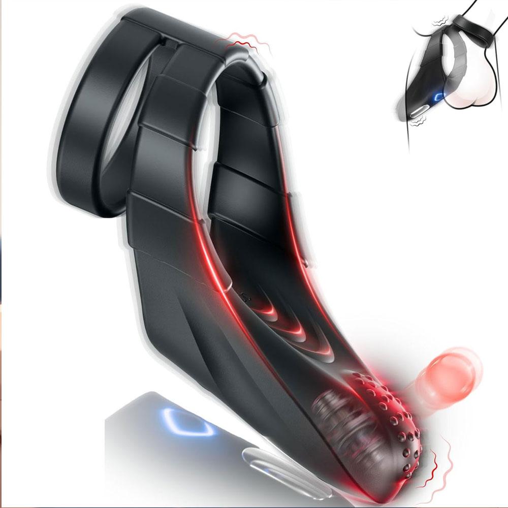 Doppelring Vibrations-Cockring Ejakulationsverzögerung Penisring für Männer Perineum-Stimulator Sexspielzeug für Paare Spiel