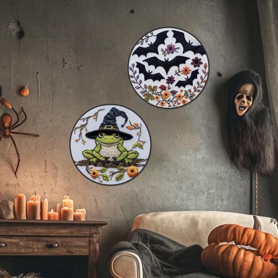 1 Set Halloween Stickset mit Rahmen, Garnen, Schere, Nadeleinfädler, Anfänger Gothic Stempelkreuzstich Handstickerei Starterset DIY-Enthusiasten