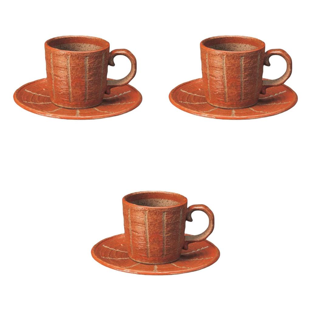 Set aus 3 geschnitzten Schachtelhalm-Kaffeetassen und Untertassen x Keramiktassen und Untertassen von Setomonohonpo (rot) [15 1,5 cm]
