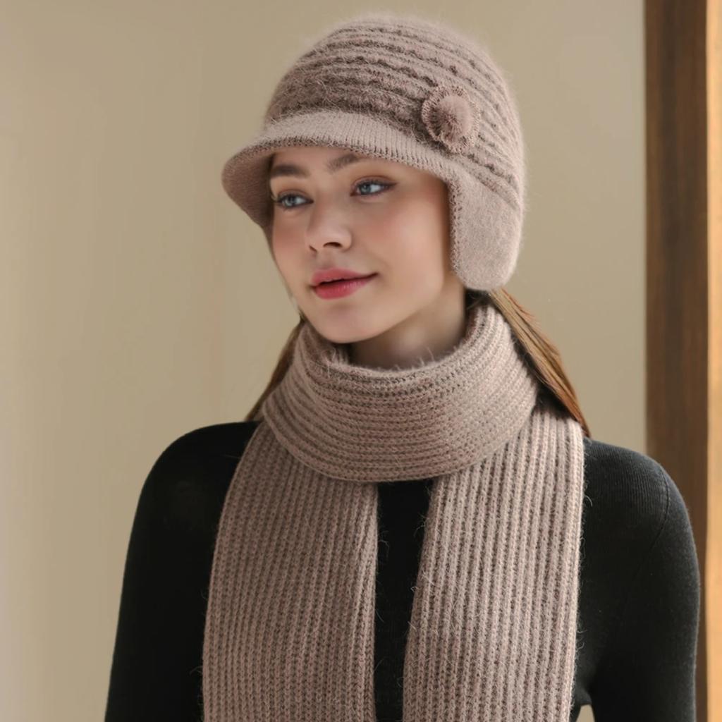 Neuer Stil Damenmode Winter Warmhalten Anzug Weiblich Dandy Mützen für Frauen Lässige Kaninchenfellmischung Strickmütze Wintermütze Set