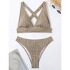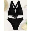 2025 Gerüschtes Knitter-Bikini Damen Bademode Weiblicher Badeanzug Zweiteiliges Bikini-Set Hoch geschnitten Badeanzug Schwimm-Strandbekleidung Dame