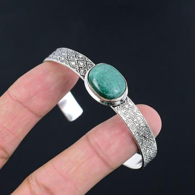 Variszit-Armreif, Top-Qualität, Edelstein-Manschettenarmband, 925er Sterlingsilber, verstellbarer Armreif, handgefertigtes Manschettenarmband, Geschenk für Mama, ethnischer Schmuck