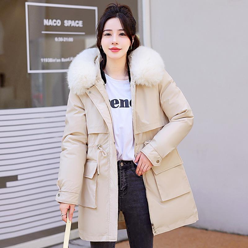 Female medium length new hooded big fur collar women's coat versatile removable women