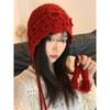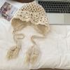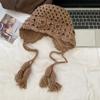 Ethnisch Stil Handgefertigt Hakenblume Hut für Damen im Herbst und Winter Retro Blumen Hohl Gestrickter Hut für Reise Foto Pullover Wollhut