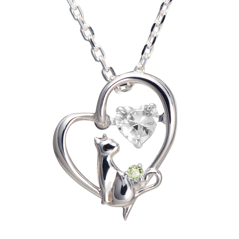 This incredibly popular women's cat-themed necklace lets you choose your favorite birthstone. The cute cat and cute heart are a perfect match! The three-dimensional design accentuates your chest whether viewed from the front or at an angle. It also features a hidden heart formed by the tail and birthstone!